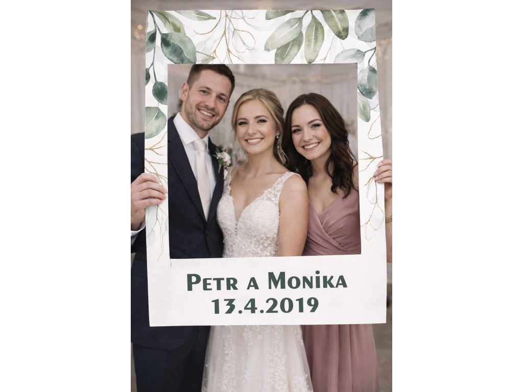 Velký fotorámeček s vlastními jmény a datem je originální rekvizita do svatebního fotokoutku i na jiné oslavy. Skvěle poslouží jako zábava pro hosty a zároveň vytvoří krásné vzpomínkové fotografie. Rozměr 65x85cm, vnitřní rámeček 50x55cm.